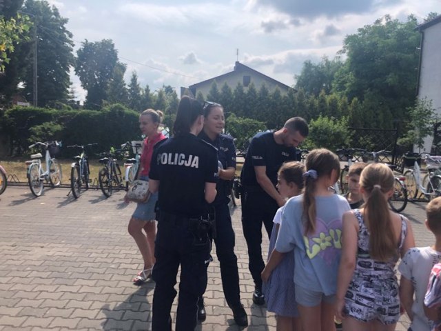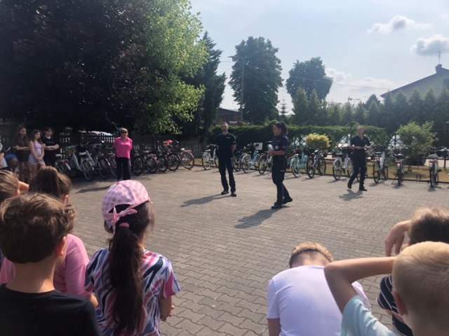 Omówili podstawowe zasady bezpiecznego zachowania się podczas wakacyjnego wypoczynku, przypomnieli, jak bezpiecznie poruszać się po drogach, zapoznali z modelami bezpiecznych zachowań i sposobami szybkiego reagowania na zagrożenia. Przestrzegali również najmłodszych, jak mają się zachować w sytuacjach, gdy zostają sami w domu oraz w kontaktach z osobami obcymi.