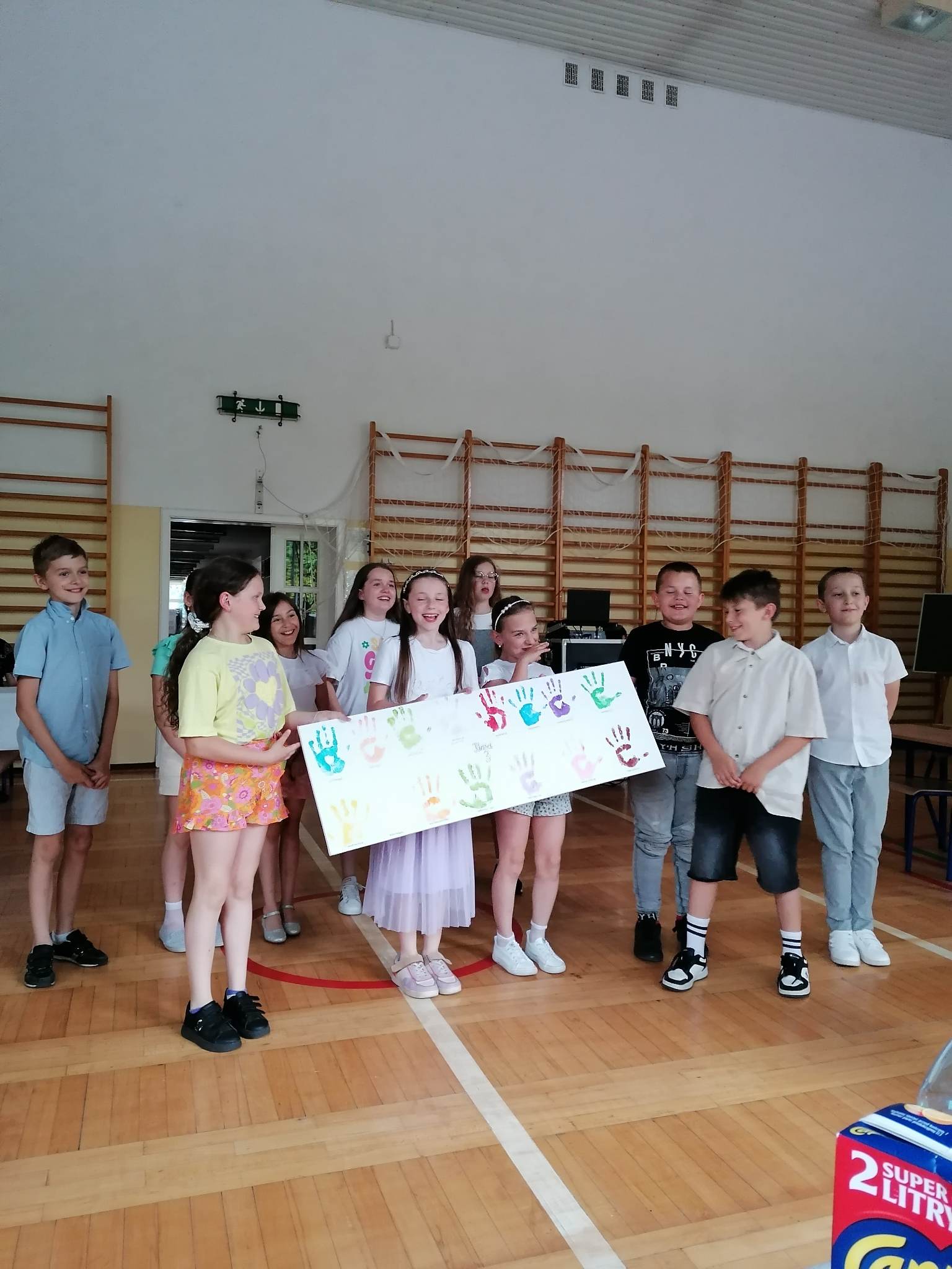 Dzieci zaprezentowały swoje zdolności artystyczne: wokalne, taneczne oraz aktorskie. Całą klasą zaśpiewali dla rodziców dwie piosenki „Prosimy was o uśmiech” oraz „Wakacje” z repertuaru kabaretu „Otto”. Dziewczynki zatańczyły Just Dance „Levan Polkka:, a chłopcy wykonali układ taneczny do utworu Shakiry „Waka Waka”. Gwoździem programu był kabaret „Ze szkolnej ławki”. Uczniowie pokazali rodzicom kilka scen, które im się przytrafiły w ciągu tych trzech lat nauki. W rolę nauczycielki wcieliła się Gabrysia. Na końcu występów urządzili dla rodziców pokaz mody. Z gracją zaprezentowali samodzielnie przygotowane stroje. W podziękowaniu za trzy lata pracy przygotowali dla wychowawczyni pamiątkowy obraz z kolorowych dłoni i uroczyście wręczyli.