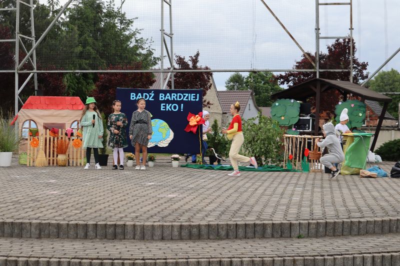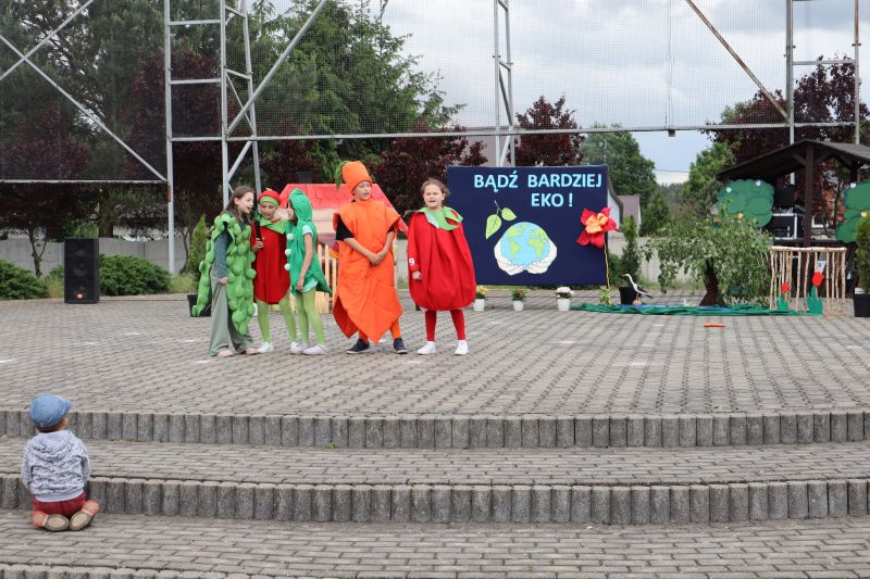 Na ten szczególny dzień przygotowano występy. Przedszkolaki zaprezentowały nowoczesne układy taneczne „La Raspa” i „Minionki”. Uczniowie szkoły podstawowej wystąpili w przedstawieniu pt. „Bądź bardziej Eko!”. Wcielając się w role postaci z bajek, podkreślili słowami wierszy i piosenek, jak ważna jest ochrona środowiska naturalnego i prawidłowa segregacja śmieci. Przypomnieli również o zasadach właściwego odżywiania i zdrowego stylu życia.
