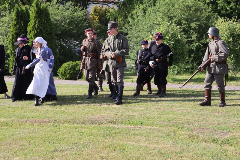 O godzinie 17.00 rozpoczął się spektakl historyczny. Dziewczęta i chłopcy naszej szkoły przedstawili fragment rekonstrukcji „Bitwy o Granowiec” przygotowanej pod kierunkiem pana Bartosza Lisiaka – rekonstruktora z Ostrowa Wielkopolskiego. Bohaterowie, w specjalnie dobranych strojach i za pomocą artefaktów wytworzonych współcześnie, wiernie odtworzyli koloryt tamtych czasów. Widowisko było dla wszystkich żywą lekcją historii.