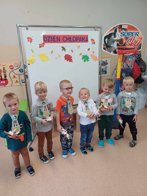 Nie inaczej było też w naszym przedszkolu! Już od samego rana dało się wyczuć odświętną atmosferę! Każdy chłopak otrzymał okolicznościowy krawat „ super bohatera” oraz upominek, a dziewczynki wraz z nauczycielkami odśpiewały wszystkim „ małym panom” uroczyste "Sto lat" i złożyły najserdeczniejsze życzenia. Na pamiątkę, każdy z chłopców, miał okazję zrobić sobie super fotografię i popisać się swoją zręcznością.