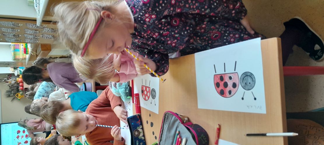 Zadanie nr 2 pt.: „B – Biedronka” polegało na przenoszeniu kółek-kropek za pomocą powietrza wdychanego/wciąganego przez słomkę.