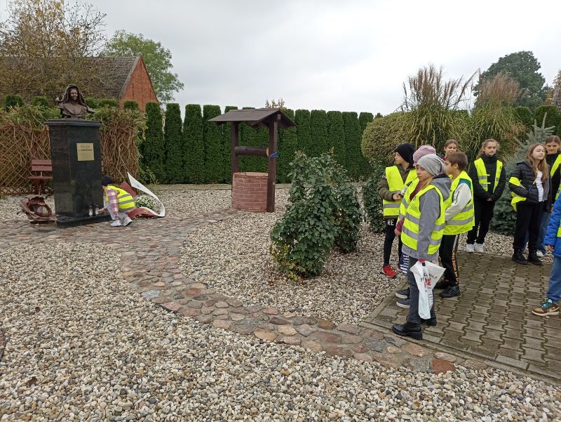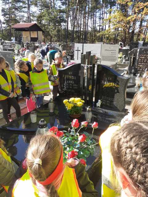 Wraz z wychowawcami odwiedzili grób pani Grzesiak – byłej nauczycielki, wieloletniego proboszcza naszej parafii – ks. Stefana Kühna oraz zmarłego w tym roku pracownika naszej szkoły – pana Krzysztofa Doktora. Ponadto zapalili znicze pod tablicą upamiętniającą ofiary II wojny światowej oraz pod figurą bł. Siostry Gwidony. Najstarsze klasy – VI i VII wraz z wychowawczyniami zadbały także o uporządkowanie cmentarza ewangelickiego przy ulicy Spokojnej.