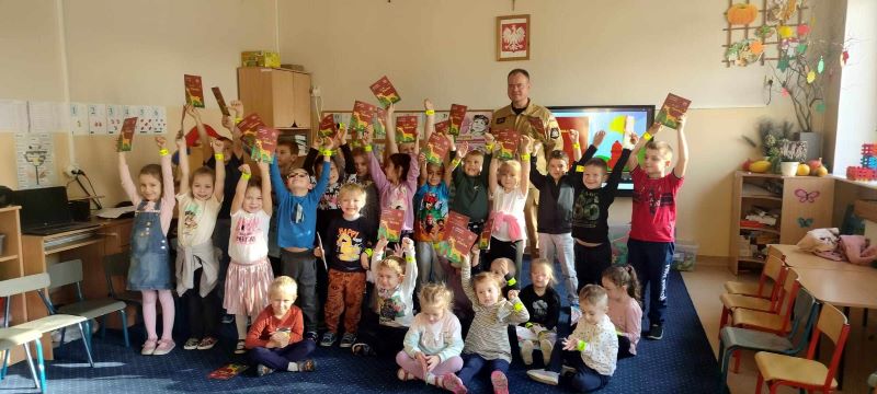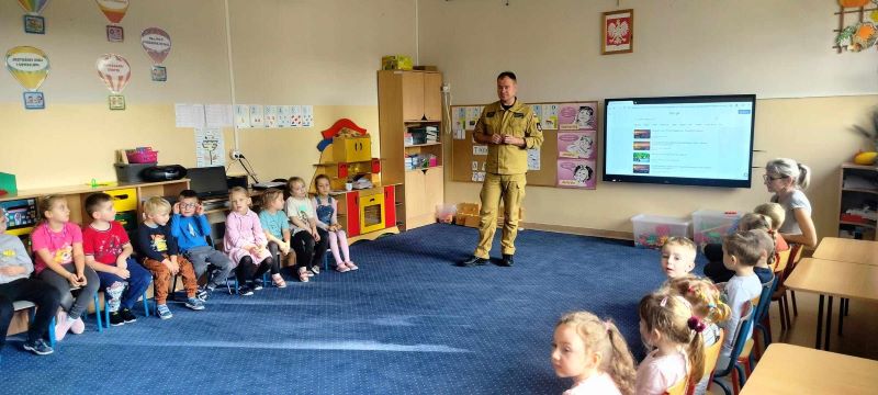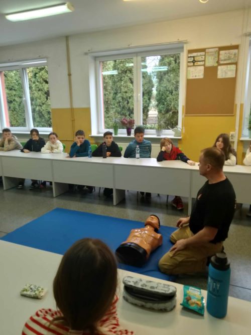 Dla uczniów klasy VI i VII poprowadzili oni warsztaty z zakresu szeroko pojętej prewencji społecznej, a także z zakresu udzielania pierwszej pomocy. Młodzież bardzo chętnie uczestniczyła w zajęciach, ćwicząc praktyczne umiejętności w zakresie resuscytacji krążeniowo – oddechowej, układanie poszkodowanego w pozycji bocznej ustalonej, czy postępowania przy zakrztuszeniach. Pan Tomasz opowiedział też o trudach i codzienności pracy strażaka, a także o ścieżce edukacyjnej prowadzącej do tego zawodu. Następnie strażacy odwiedzili naszych najmłodszych milusińskich, czyli przedszkolaków. Podczas tego spotkania dzieci dowiedziały się pod jaki numer trzeba zadzwonić, gdy zobaczą pożar lub duże zadymienie, jak zachować się podczas ewakuacji i dlaczego dzieci nie powinny bawić się zapałkami. A wszystko to dzięki dwuodcinkowemu programowi pt. „Florka na straży bezpieczeństwa”.