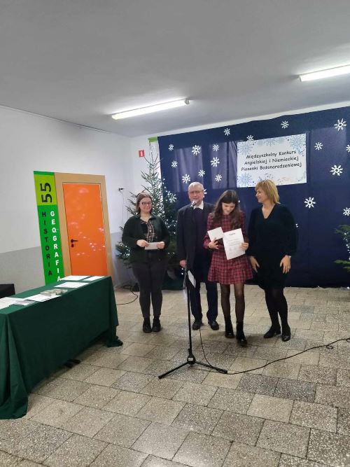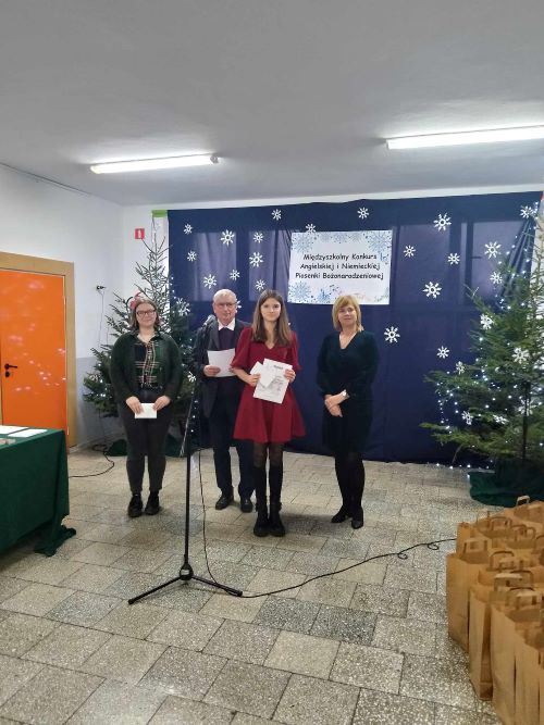 Celem konkursu były: prezentacja umiejętności językowych, wokalnych i artystycznych uczniów, propagowanie nauki języka angielskiego/ niemieckiego przez śpiew oraz kształcenie postaw czynnego uczestnictwa w kulturze. Jak co roku, nasza szkoła też wzięła w nim udział, a reprezentowały nas uczennice: Nikola Szewczyk w utworze „Marry, did you know?”, Klaudia Rudowicz – „Merry Christmas everyone”, Liliana Wójcik – „Last Christmas” i Daria Rudowicz – „Snowman”. Wszystkie występy były cudowne, a konkurencja ogromna. Popisy młodych artystów wprawiły publiczność w świąteczny nastrój, a naszym solistkom udało się zdobyć nagrody: