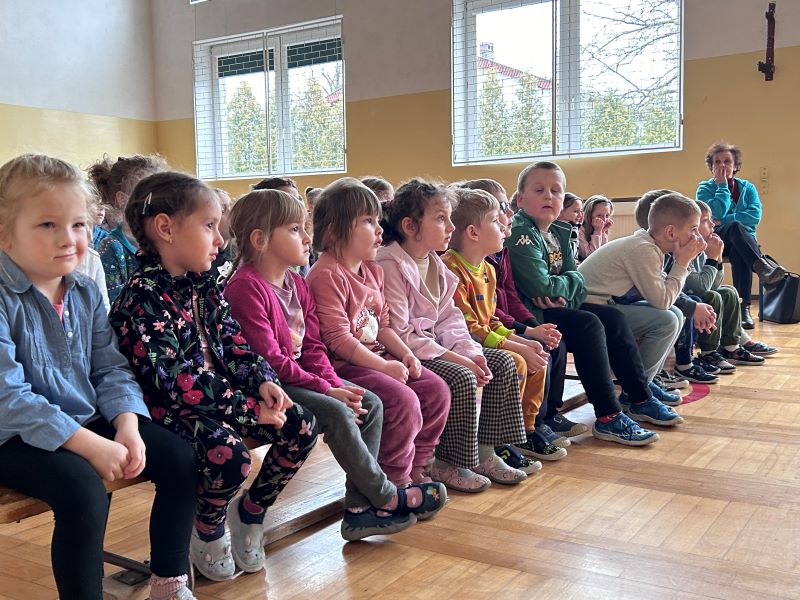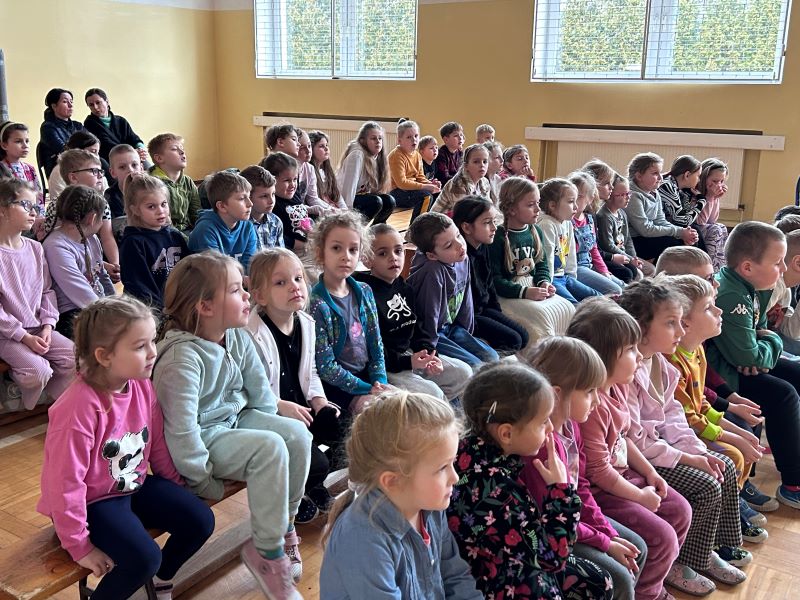 W środę, 7 lutego 2024 r. gościliśmy w przedszkolu Teatr Lalek „Wszędobylski” z Poznania, który przedstawił dzieciom widowisko „W zamku Króla- Niewiarygodne przygody Tomka Wszędobylskiego i Zajączka Gucia”. Akcja toczyła się za murami zamczyska.