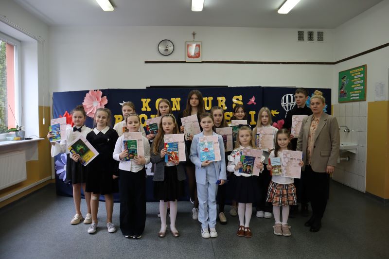 Laureaci etapu szkolnego otrzymali nagrody książkowe, a wszystkim uczestnikom wręczono dyplomy i słodki upominek. Nie zabrakło gratulacji i pamiątkowych zdjęć. W etapie gminnym konkursu naszą szkołę będą reprezentowali zdobywcy I i II miejsca w każdej kategorii wiekowej.